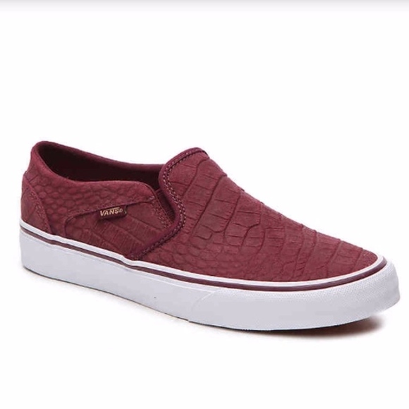 Slip On Burgundy Reptile Snake Print snake print slip on vans
