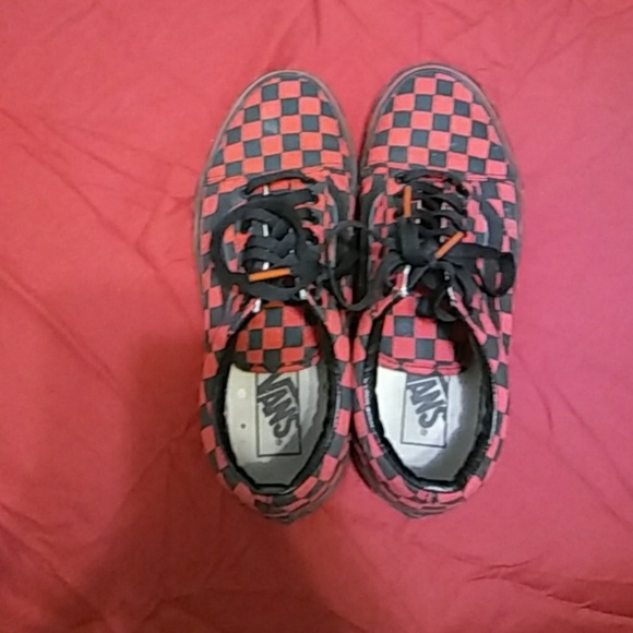 all red and black checkered vans